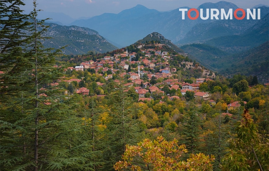 Bussi tekee ensimmäisen pysähdyksensä Taurusvuorten ylityksen aikana. Kylä sijaitsee 900 metrin korkeudessa merenpinnasta. Lyhyen pysähdyksen aikana voit nauttia upeista maisemista. 1 200 metrin korkeudessa merenpinnasta pidetään vielä yksi lyhyt tauko. Sieltä avautuvat laajat näkymät Vihreään kanjoniin ja Vihreään järveen.