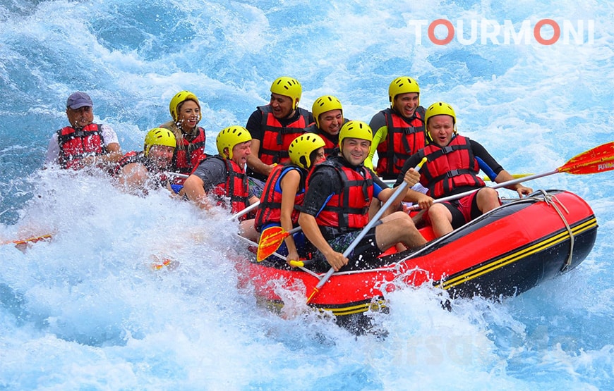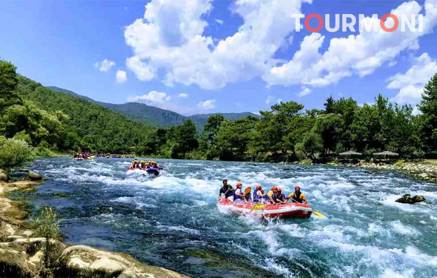 Tämä 3-in-1 yhdistelmäretki sisältää kahden tunnin koskenlaskun. Köprüçay-joki on upean virtauksensa ansiosta yksi suosituimmista koskenlaskupaikoista. Kosket ovat mielenkiintoisia ja tarjoavat matalan tai keskivaikean haasteen. Matka on jaettu osuuksiin lyhyillä lepotauoilla. Sukella rohkeasti viileään jokiveteen opettajan luvalla ja ui!