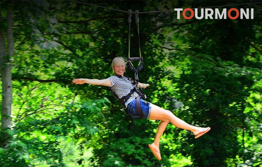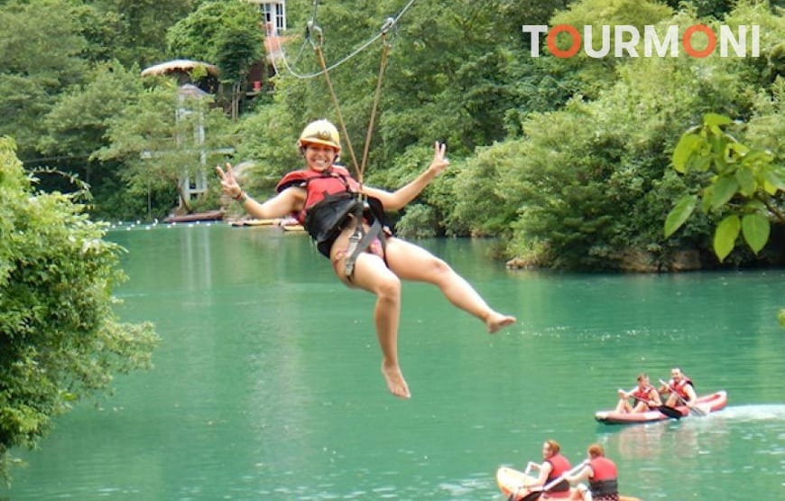 Täydentääksesi ulkoilun kolmikon, nouset taivaalle – tai pikemminkin vaijerille – jännittävällä vaijeriliukumatkalla. Turvallisesti valjaisiin kiinnitettynä liukuisit joen poikki nauttien lintuperspektiivistä kanjoniin ja alapuolella oleviin koskenlaskijoihin. Se on lyhyt, terävä adrenaliinipurkaus, joka täydentää täydellisesti päivän fyysisen rasituksen. Seikkailun päättyessä siisti bussi odottaa kuljettaakseen sinut takaisin hotellillesi, jättäen sinut väsyneeksi, mutta täynnä muistoja luonnossa todella hyvin vietetystä päivästä.